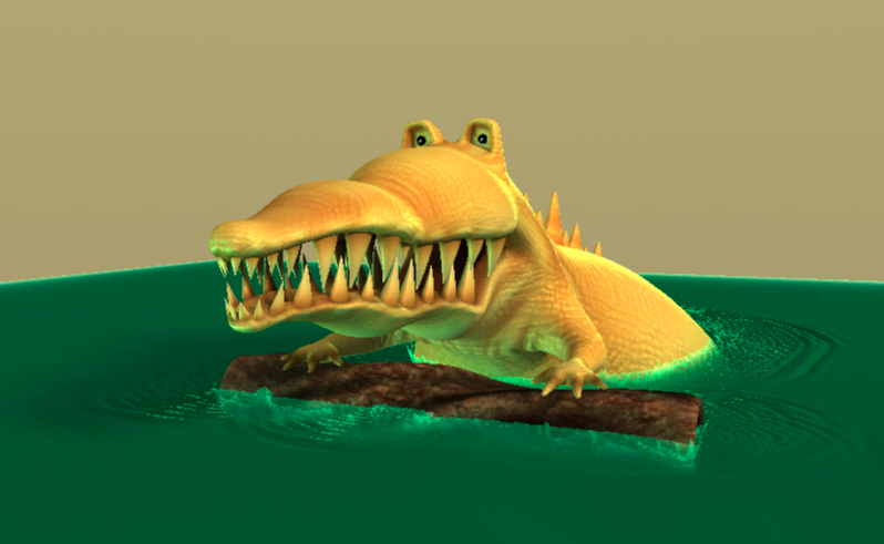 I'm teaming up with my schoolmate/coworker Kirby Culbertson for an 11 Second Challenge project. The January 2012 challenge is an aggressive sounding clip from an Indian film that we decided would make a fun scene with a lunatic Flamingo and a hungry Crocodile. My role was modeling, texturing, dynamics, and rendering. Kirby did all the rigging and will be animating the scene. Here are some images of the progress.